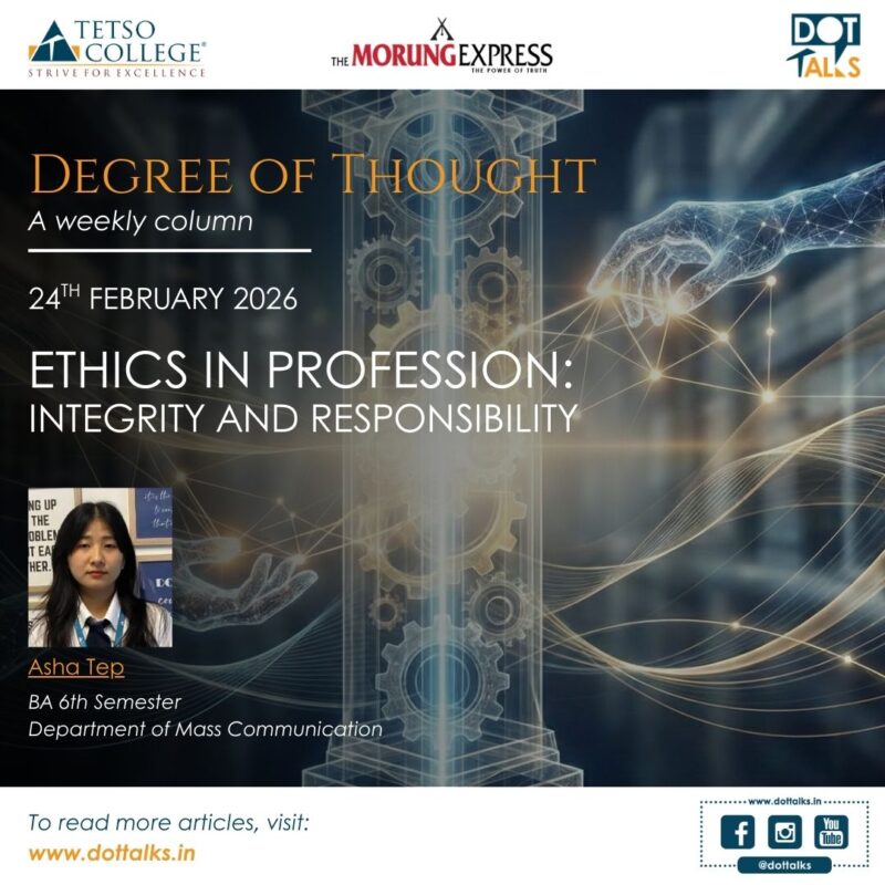 Degree of Thought is a weekly community column initiated by Tetso College in partnership with The Morung Express. Degree of Thought will delve into the social, cultural, political and educational issues around us. The views expressed here do not reflect the opinion of the institution. Tetso College is a NAAC Accredited UGC recognised Commerce and Arts College. The editorial team includes Chubamenla, Asst. Professor, Dept. of English and Rinsit Sareo, Asst. Manager, IT, Media & Communications.